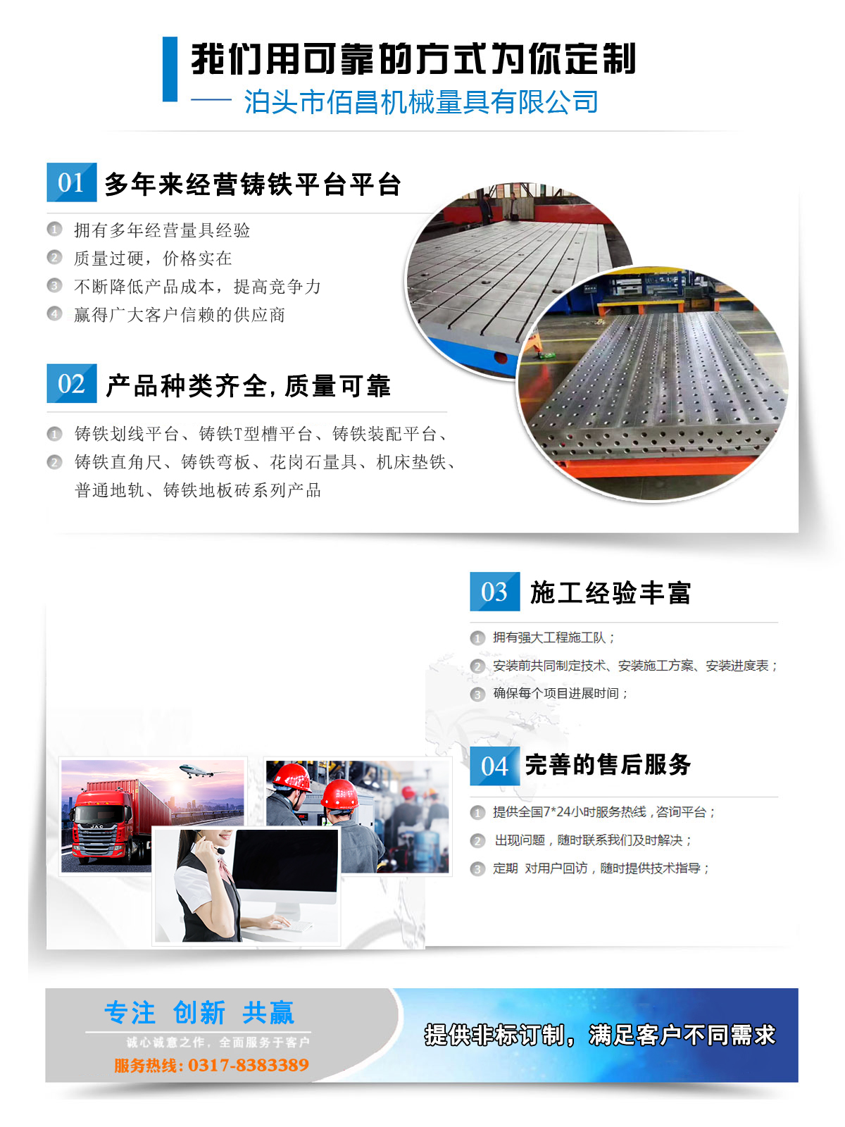 鑄鐵平板平臺系列鑄鐵地板系列大型機床鑄件系列三維柔性焊接平臺系列機床墊鐵系列地軌系列鑄鐵彎板系列鑄鐵方箱方筒系列鑄鐵V型架系列平尺、方尺系列花崗石大理石系列偏擺儀系列配重鐵系列特種扳手系列防爆工具系列量規(guī)系列建筑建材爬梯系列其他量具系列